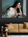Kupa Tutan Düşünen Kadın Dekoratif Kanvas - Mdf Ahşap Tablo