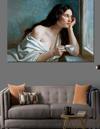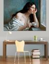 Tablomega Kupa Tutan Düşünen Kadın Dekoratif Kanvas - Mdf Ahşap Tablo