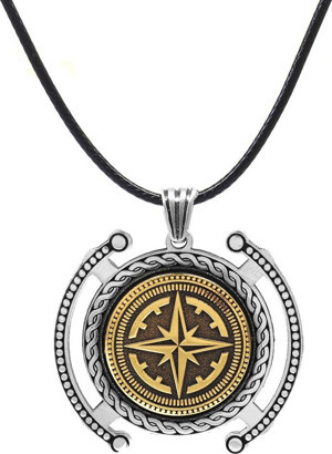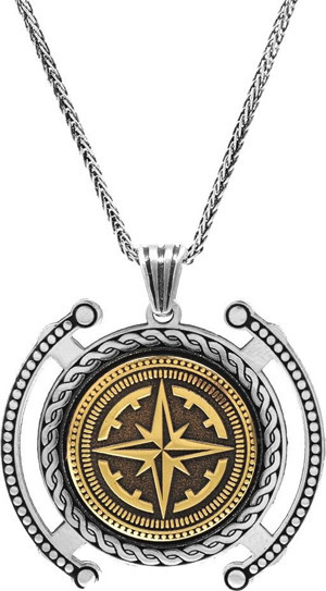 Pusula Temalı İp Zincirli 925 Ayar Gümüş Madalyon