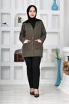 Kuraff Giyim Kadın Molina Kumaş Kışlık Büyük Beden Düğmeli Rahat Kalıp Kısa Hırka