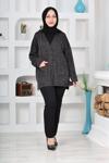 Kuraff Giyim Kadın Molina Kumaş Kışlık Büyük Beden Düğmeli Rahat Kalıp Kısa Hırka