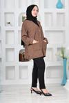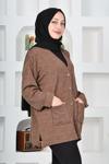 Kuraff Giyim Kadın Molina Kumaş Kışlık Büyük Beden Düğmeli Rahat Kalıp Kısa Hırka