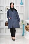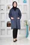 Kuraff Giyim Kadın Molina Kumaş Kışlık Büyük Beden Düğmeli Rahat Kalıp Uzun Hırka