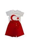 Kuraff Giyim Unisex Kısa Kol Ayyıldız Baskılıı Tişört Ve Kırmızı Şort Etekli Takım