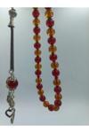 Üretildiği Malzeme: Kehribar Ana Renk: Kırmızı Sarı Tane Ölçüsü: 10x10 İmame Maddesi: Kehribar Püskül Maddesi: Alpaka Püskül Toplam Uzunluk: 33 cm Ağırlık: 29 gram