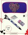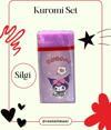 Hayranı Olacağınız Bir Set: Kuromi Versatil Kalem, Silgi ve Kabartmalı Kalpli Kalem Çantası