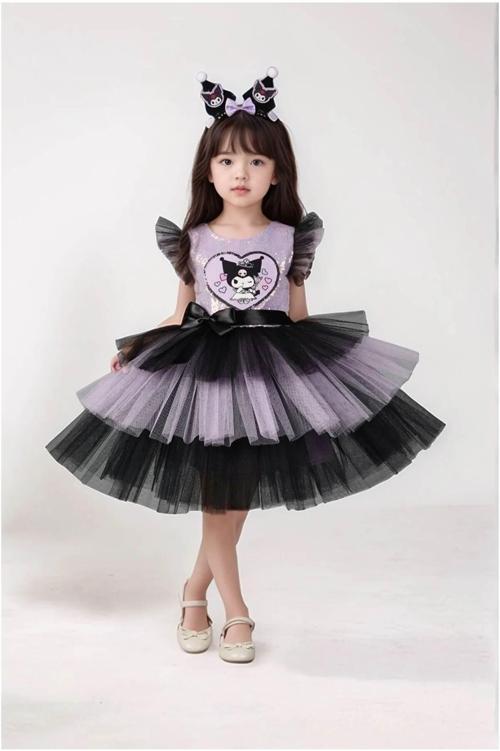 - Taç aksesuarlı , baskılı pulpayet, doğum günü, tüllü abiye elbise.