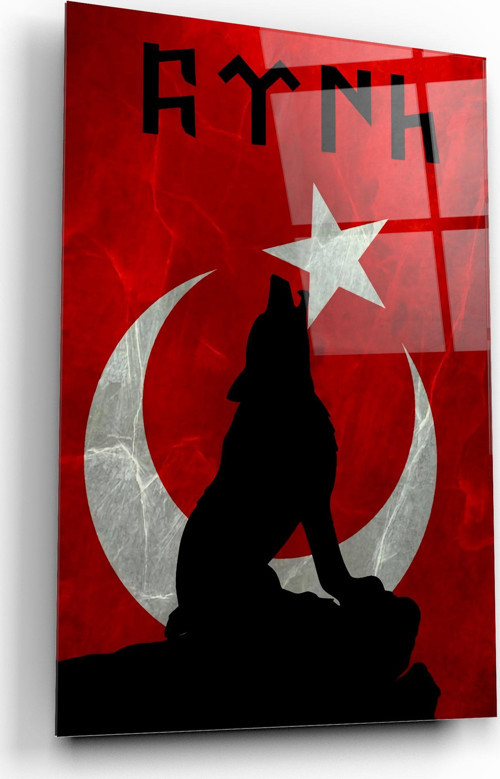 Pi Dekorasyon Kurt ve Bayrak Cam Tablo | Hediyelik, Dekoratif, Ofis, Mutfak