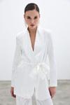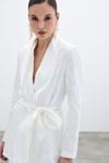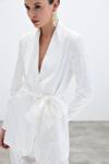 Ceket yaka, vatkalı, uzun ve geniş kol, astarlı, ön tek düğmeli, kuşaklı, kalça altı boy, desenli salaş ceket.