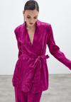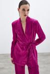 Sateen Kuşaklı Desenli Uzun Ceket - Fuşya
