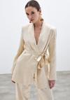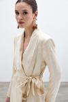 Kadın Uzun Kollu Yakalı önden Düğmeli Uzun Atlas Blazer Ceket - Image 1