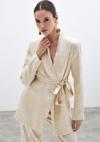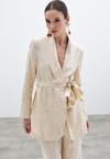 Asil Acar Home Kadın Uzun Kollu Yakalı önden Düğmeli Uzun Atlas Blazer Ceket