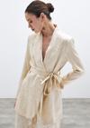Sateen Kuşaklı Desenli Uzun Ceket - Taş