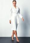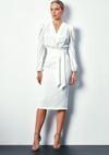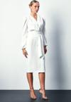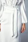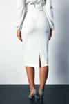 Arka fermuarlı ve yırtmaç detay, tam kalıp, kuşaklı kalem etek.