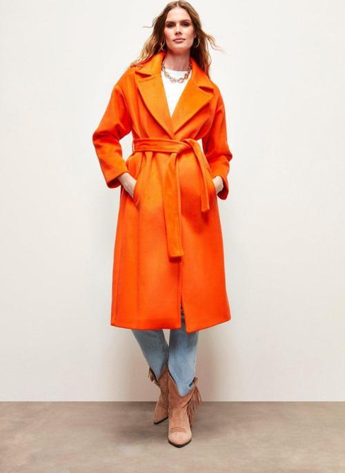Sateen Kuşaklı Salaş Kaban - Oranj