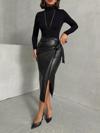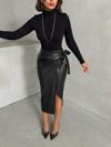 Şıklık ve zarafetin buluştuğu Kuşaklı Uzun Deri Etek, gardırobunuzun vazgeçilmezi olmaya aday. Hem günlük hayatta hem de özel davetlerde şıklığınızı tamamlayacak şık bir seçenektir.