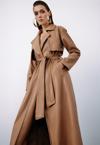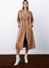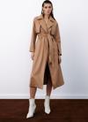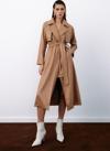 Suni deri, ceket yaka, cepli, şardonlu kemerli trenç.