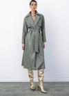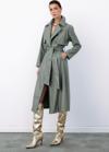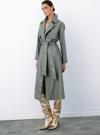 Suni deri, ceket yaka, cepli, şardonlu kemerli trenç.