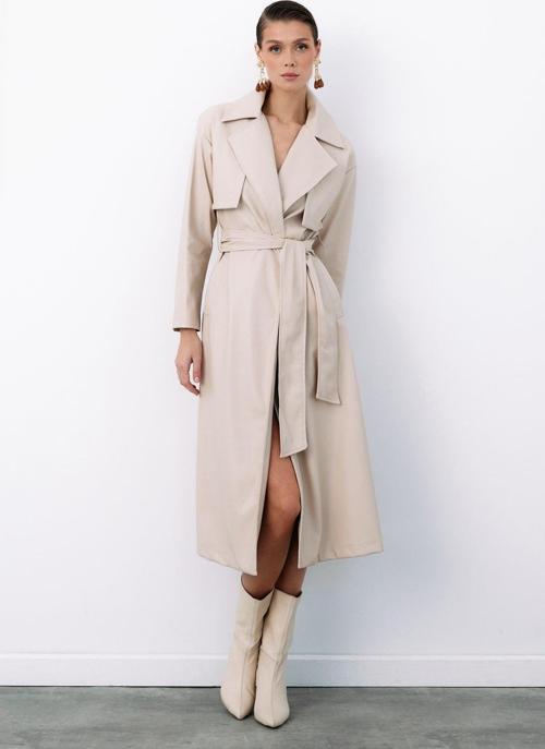 Suni deri, ceket yaka, cepli, şardonlu kemerli trenç.