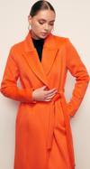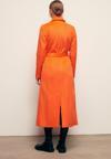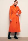 Kruvaze yaka, vatkalı, içi astarlı ,arka yırtmaçlı detay, cepli, kuşaklı uzun kaban.