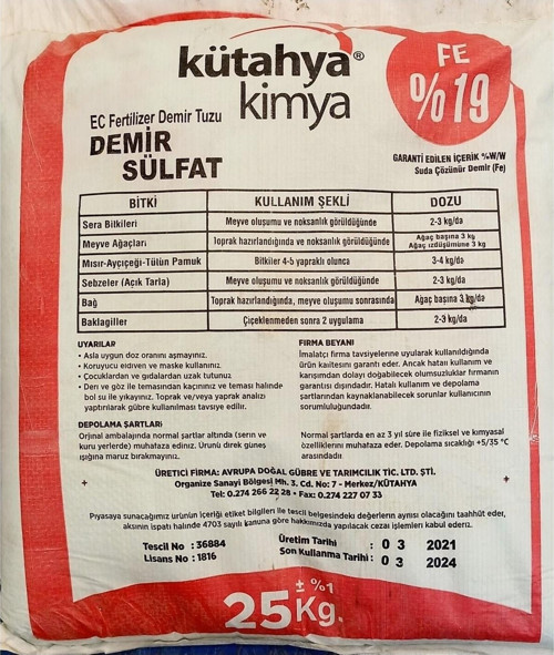 Toz formda olan kimya demir sülfat, bitkilerin ihtiyaç duyduğu demir içeriğini sağlar ve toprağın verimliliğini artırır.