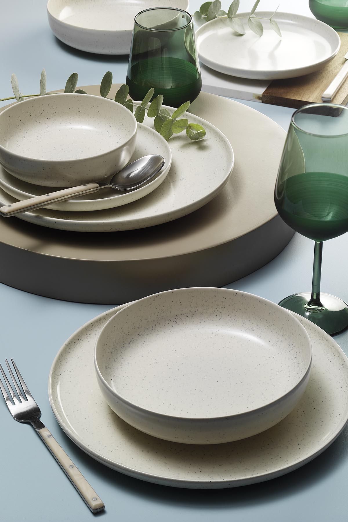 6 Adet 27 cm Servis Tabak, 6 Adet 21 cm Çukur Tabak ve 6 Adet 15 cm Kaseden oluşan bu seti, tüm davetlerinizde aileniz ve misafirlerinizle birlikte lezzetli yemeklerinizin tadını çıkarmak için tercih edebilirsiniz. Farklı boyutlardan oluşan tabakları sayesinde çeşitli yemeklerin servisi için uygundur.