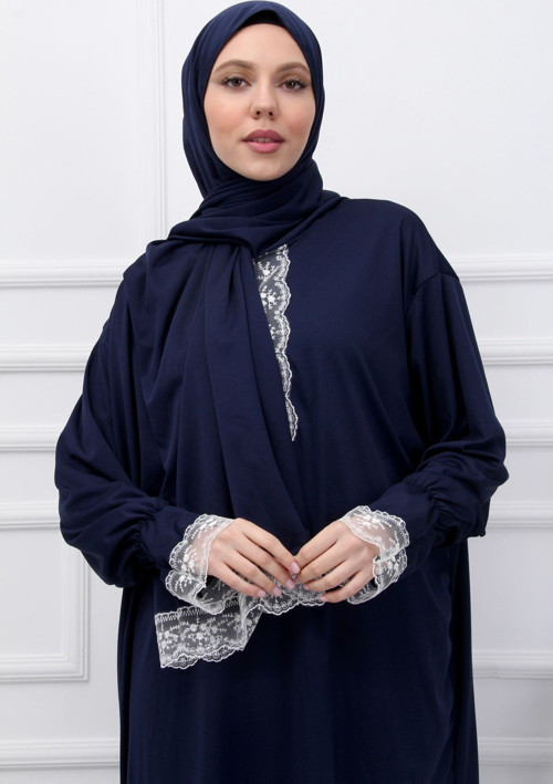 Kutay Collection Mevsimlik Başörtülü Tek Parça Şık Namaz Elbisesi, Terletmeyen Namaz Kıyafeti, Dökümlü Ferace