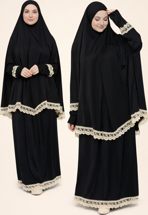 Kutay Collection Mevsimlik Çift Parça Kadın Tesettür Işlemeli Namaz Elbisesi, Terletmeyen Namaz Kıyafeti