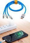 ® 3 Şarj Aleti 1 Arada Çinko Alaşım Hızlı Şarj Kablosu Mavi