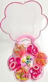 Set içerisinde farklı boyut ve renklerde yumuşak kumaş saç lastikleri, renkli silikon lastikler ve minik tokalar bulunur.