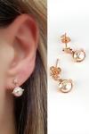 Ose Shop Kutup yıldızı detaylı incili sallantili Gezegen Küpe 925ayar Gümüş Üzerine Rose Altın Kaplama