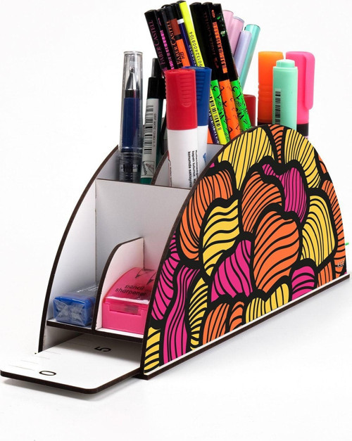 Ürünümüz MONTAJI YAPILMIŞ KUTULU OLARAK gönderilmektedir. Ürünümüzün Görseli UV Makinesinde kanserojen olmayan boyalar ile basılmıştır. Kesinlikle Sticker yapıştırma değildir. Ürünü doğrudan güneş ışığında tutmayınız. Doğrudan üzün süreli güneş ışınları ürünlerin renklerinin solmasına sebebiyet verecektir. Ürünümüz 3 mm mdfden lazer kesim ile kesilip yapılmıştır. Ürünün iki tarafındaki görsel kısımlarda çift MDF kullanılmıştır. 25 cm Ahşap Cetvel ile beraber ile gelecektir. Ürünümüzün her iki uç tarafında ki küçük raflar kalem gözlerine konulup alınması zor olan silgi, kalemtraş, zımba teli, ataş gibi ufak parçalar için dizayn edilmiştir. Cetvel gözüne kesici uca sahip ürünlerde (.pergel,makas) konulabilir. Kalemlik Ölçüleri