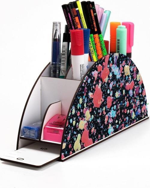 Kututr Ahşap Vip Karışık Gökkuşağı Cetvelli Masaüstü Kalemlik Organizer Montajlı Kutulu