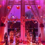 Kuzey Vitrin Mekan Dekor Işığı Kırmızı Salkım Led Işık Kalpli Salkım Led Işık Kırmızı Işıklı Perde Işık