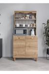 Kznmob Home Bohem Tarzda Kahve Köşesi Bahar Meşe, Erzak Dolabı, Kiler Dolabı, Çok Amaçlı Mutfak Dolabı