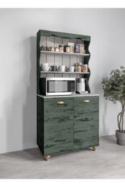 Kznmob Home Bohem Tarzda Kahve Köşesi Kaktüs Yeşili, Erzak Dolabı, Kiler Dolabı, Çok Amaçlı Mutfak Dolabı