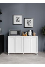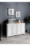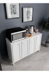 Stella Çok Amaçlı Country Dolap, 4 Kapaklı Country Kiler Mutfak Dolabı Beyaz, Country Konsol