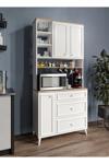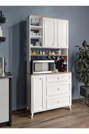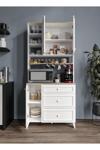 Kznmob Home Stella Country Kahve Köşesi Beyaz-Meşe 90Cm, Erzak Dolabı, Kiler Dolabı, Çok Amaçlı Mutfak Dolabı
