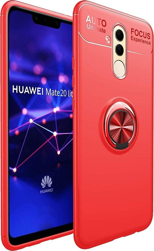 KZY İletişim Huawei Mate 20 Lite Kılıf Renkli Yüzüklü Manyetik Silikon Kapak Kırmızı - Kırmızı
