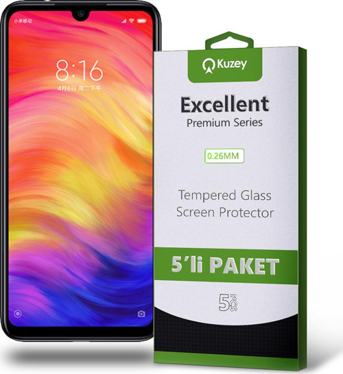 KZY İletişim Xiaomi Redmi Note 7 Temperli Ekran Koruyucu Kırılmaz Cam Ekonomik 5'li Paket