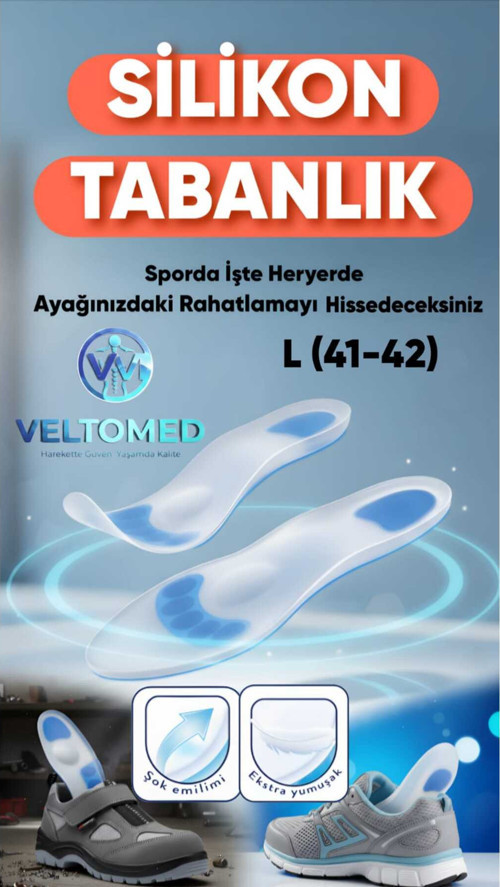 Veltomed L bdn Tam Ortopedik Anatomik Silikon Jel Tabanlık Şok Emilimi ve Topuk Ağrısı Önleyici Topuk Dikeni-