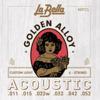 La Bella'nın Altın Alaşım setleri, özel olarak formüle edilmiş 80/20 Pirinç Alaşımımızla sarılarak çok parlak bir ton üretir. Uzun süre ses azalmasını sürdürme yeteneği olan bu farklı setler, çalma kolaylığı sağlamak için esnek bir tel gerginliğine sahiptir.