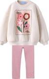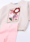La Ciel Paris Kız Çiçek Aplikeli Sweatshirt & Pembe Tayt