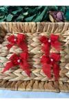 - Zarif inci detaylarıyla süslenmiş, kırmızı keten kurdeleler, her türlü etkinlikte şıklığınızı tamamlar.