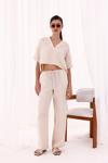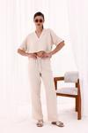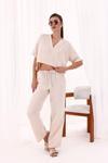 - Rahat kesimi ile günlük kullanım için ideal, yetişkinlerin tercihi olan düz desenli bluz-pantolon takım.