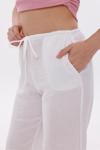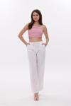 Beli Lastikli Bağcıklı Dokuma Beyaz Pantolon