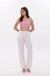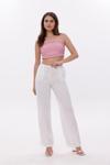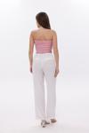 La Pante Beli Lastikli Bağcıklı Dokuma Beyaz Pantolon