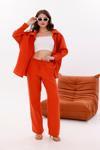 La Pante Beli Lastikli , Bağcıkl,Ön Cepli Düşük Omuzlu Müslin Gömlek Pantolon Takım