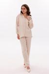 - Rahat kesimi ile günlük kullanım için ideal, beli lastikli ve bağcıklı gömlek pantolon takım.