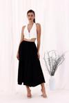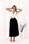 düz desenli midi boy etek, günlük kullanım için idealdir.